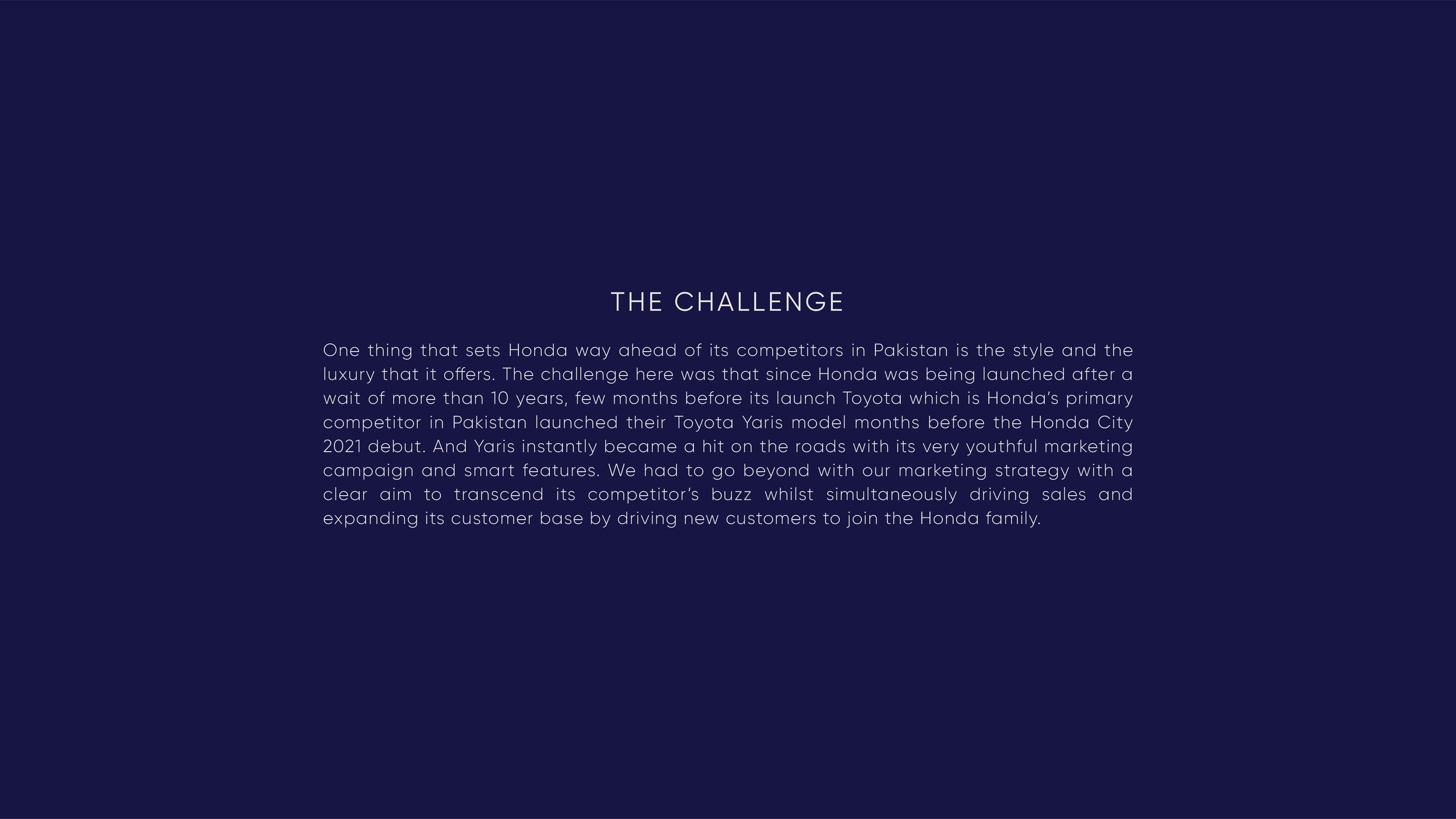 Honda Pakistan introduced the much-anticipated 6th Generation Honda City after almost more than a decade. With the legacy of being the most loved sedan, expectations were sky-high for the new variant. The brand aimed to amplify the buzz whilst also reaching out to the young male target audience and expand its user base significantly which was conventionally associated to be a family sedan or associated with working women.